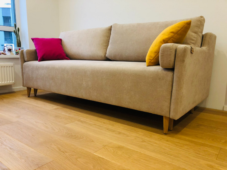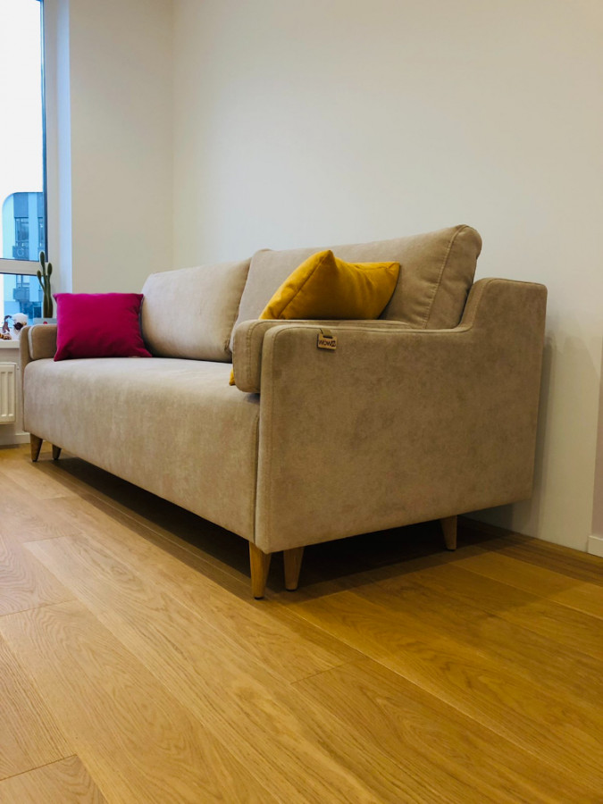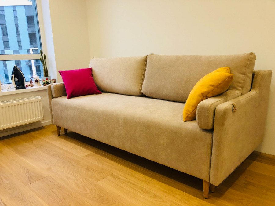 Колір дивану нам дуже підійшов до інтер'єру. Спальне місце просто гігантське порівняно з не великими габаритами дивану. Якість на вищому рівні