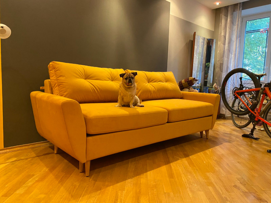 Дуже задоволена диваном. Красивий зовнішній вигляд у поєднанні з практичною тканиною це те що я шукала. Моя киця теж його полюбила